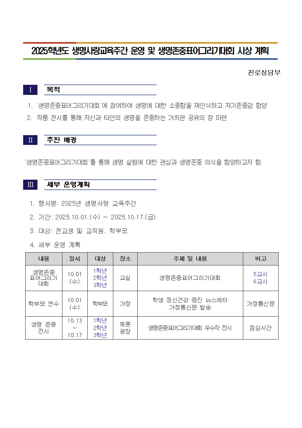 [ÀϹÝ] 2025Çг⵵ »ý¸í»ç¶û±³À°ÁÖ°£ ¿î¿µ ¹× »ý¸íÁ¸ÁßÇ¥¾î±×¸®±â´ëȸ ½Ã»ó °èȹ