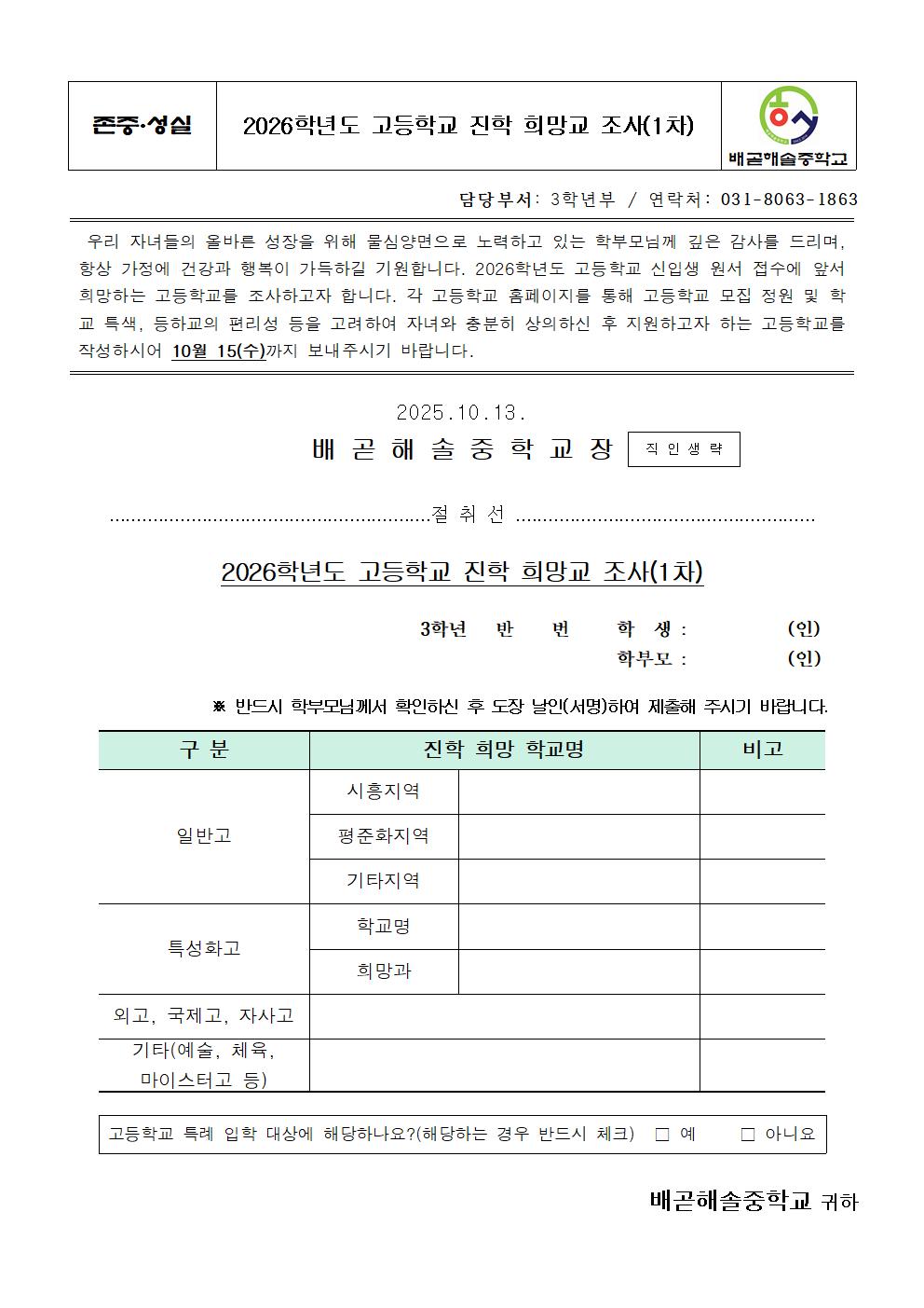 [ÀϹÝ] 2026Çг⵵ °íµîÇб³ ÁøÇÐ Èñ¸Á±³ Á¶»ç(1Â÷)_3Çгâ