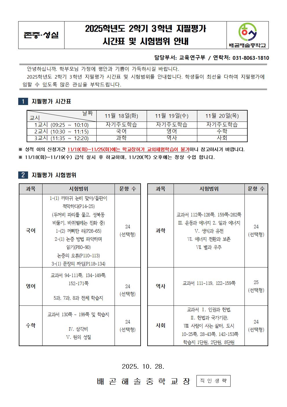[ÀϹÝ] 2025Çг⵵ 2Çбâ 3Çгâ ÁöÇÊÆò°¡ ½Ã°£Ç¥ ¹× ½ÃÇè¹üÀ§ ¾È³»