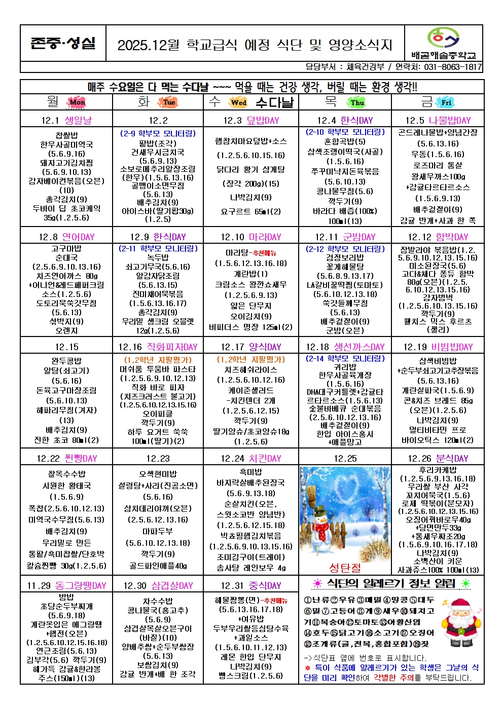 [ÀϹÝ] 2025.12¿ù Çб³±Þ½Ä ¿¹Á¤ ½Ä´Ü ¹× ¿µ¾ç¼Ò½ÄÁö