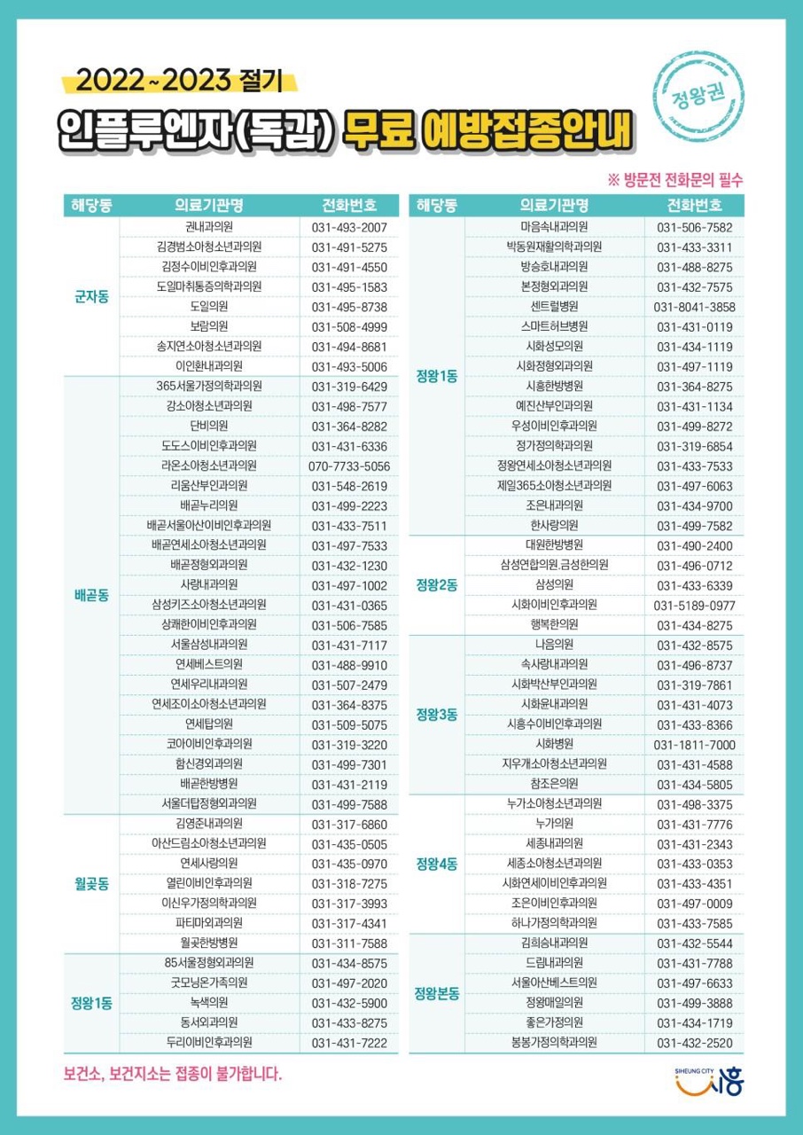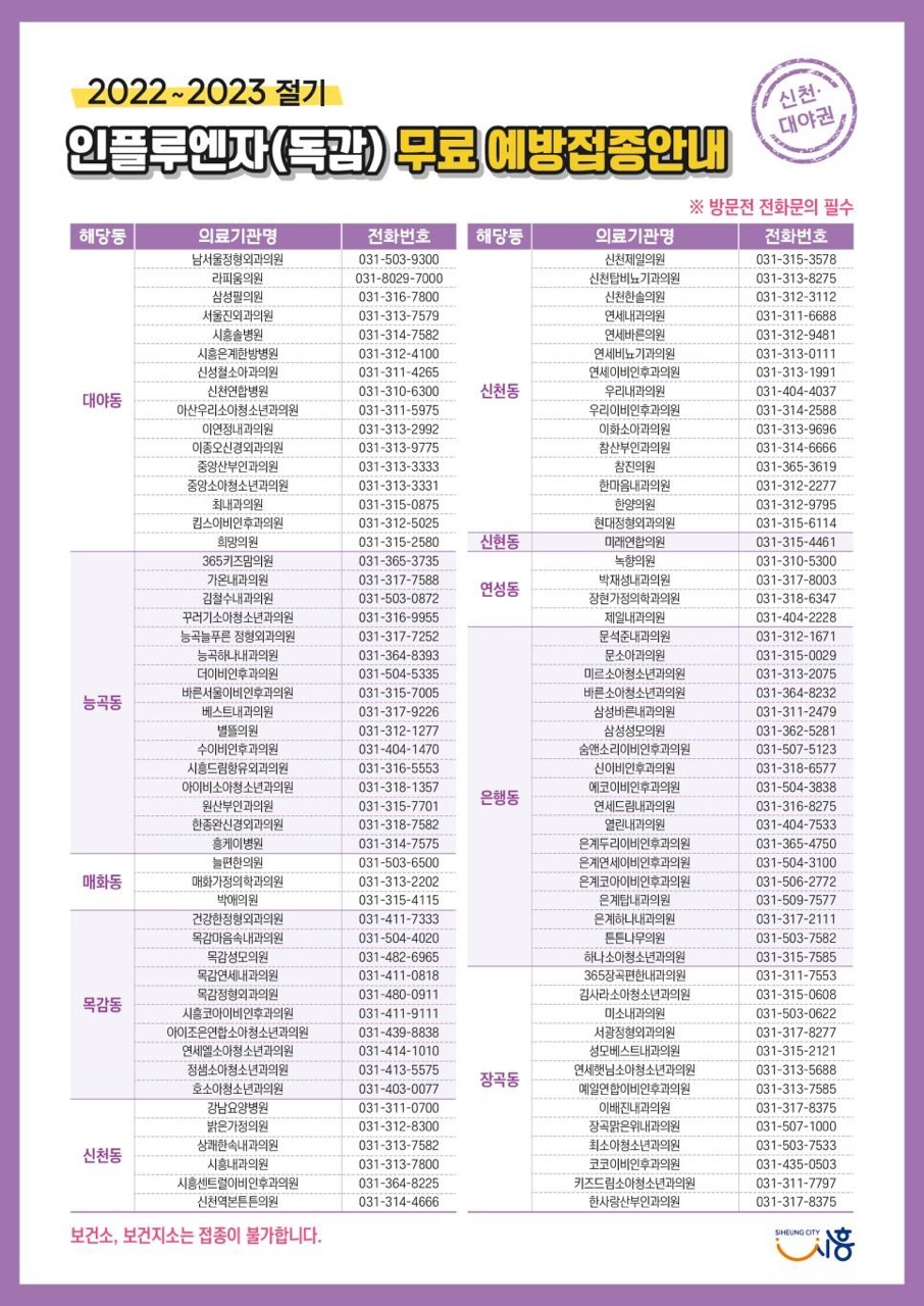 [ÀϹÝ] ½ÃÈïÁö¿ª ¼ÒÀç ÀÎÇ÷翣ÀÚ ¿¹¹æÁ¢Á¾ °¡´É º´¿ø ¾È³»ÀÇ Ã·ºÎÀ̹ÌÁö 2