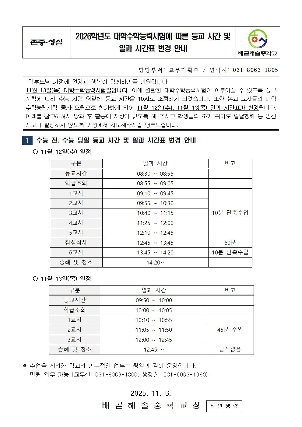[ÀϹÝ] 2026Çг⵵ ´ëÇмöÇдɷ½ÃÇè¿¡ µû¸¥ µî±³ ½Ã°£ ¹× Àϰú ½Ã°£Ç¥ º¯°æ ¾È³»