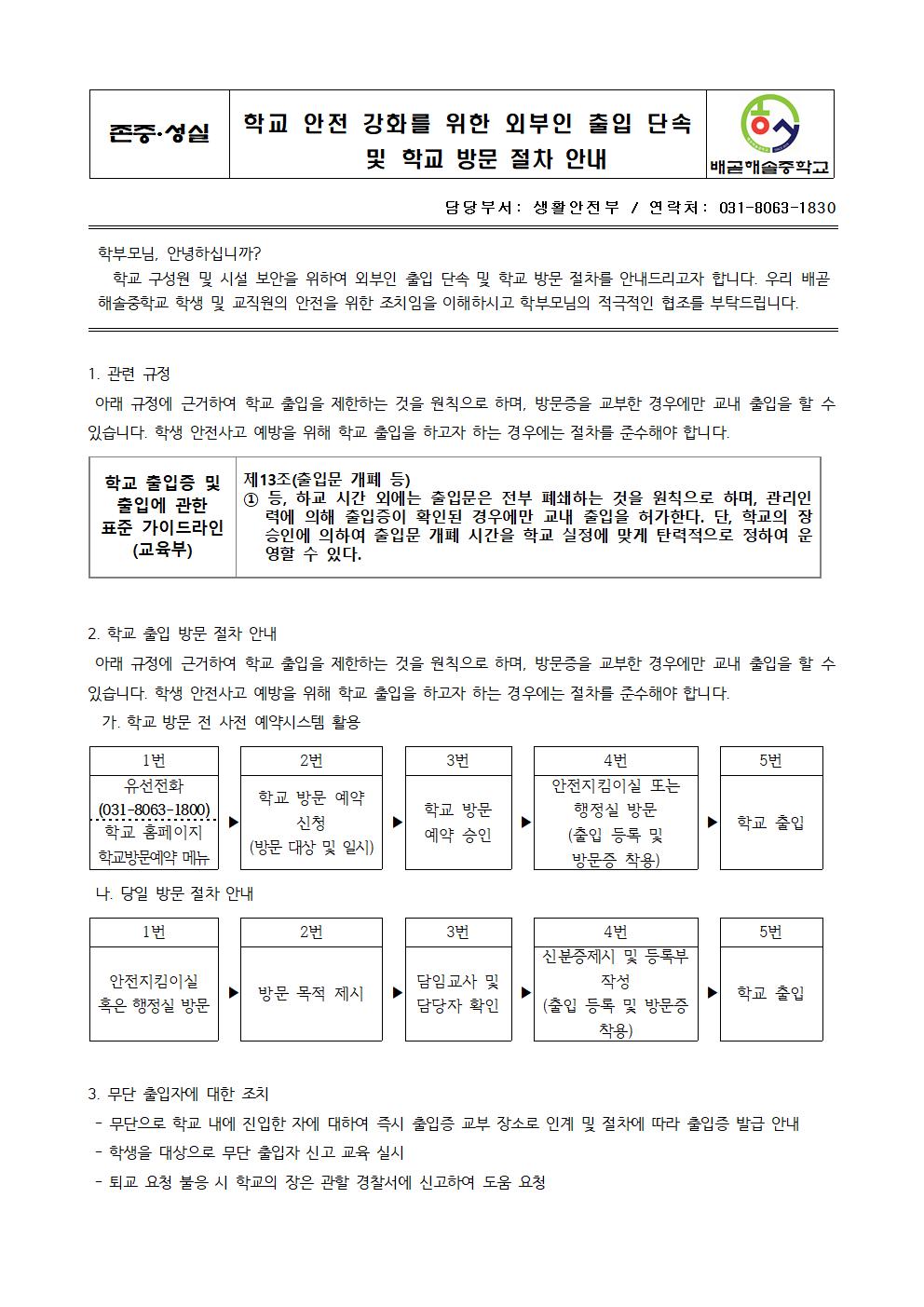 [ÀϹÝ] Çб³ ¾ÈÀü °È¸¦ À§ÇÑ ¿ÜºÎÀÎ ÃâÀÔ ´Ü¼Ó ¹× Çб³ ¹æ¹® ÀýÂ÷ ¾È³»