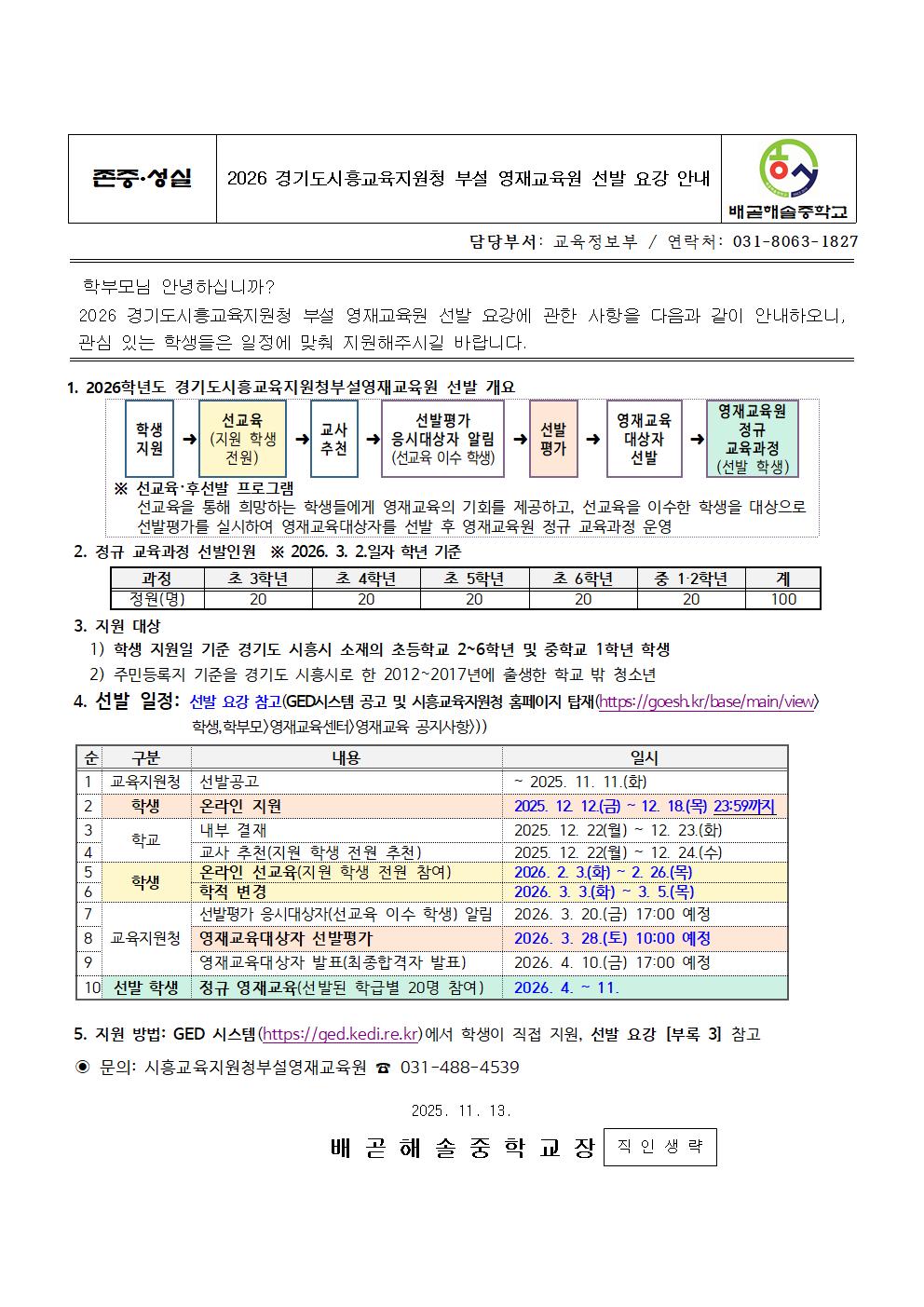 2026 °æ±âµµ½ÃÈï±³À°Áö¿øÃ» ºÎ¼³ ¿µÀç±³À°¿ø ¼±¹ß ¿ä°­ ¾È³».hwp (432.00KB)