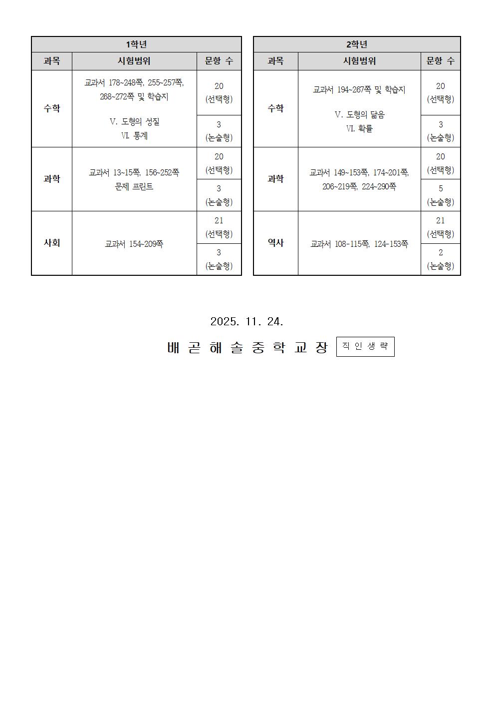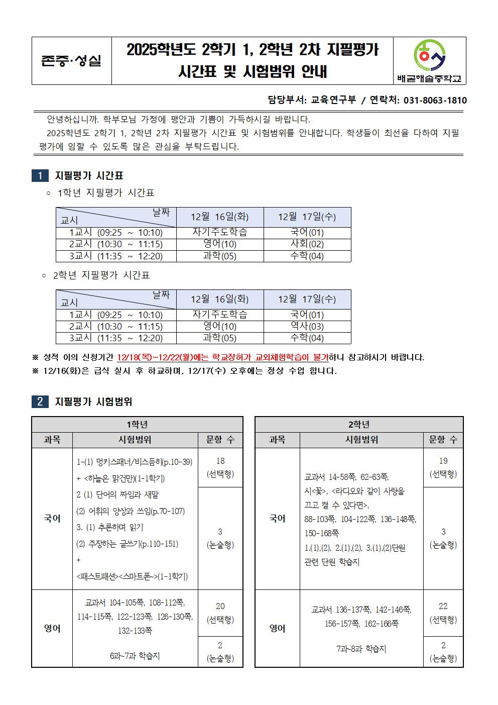 [ÀϹÝ] 2025Çг⵵ 2Çбâ 1, 2Çгâ 2Â÷ÁöÇÊÆò°¡ ½Ã°£Ç¥ ¹× ½ÃÇè¹üÀ§ ¾È³»